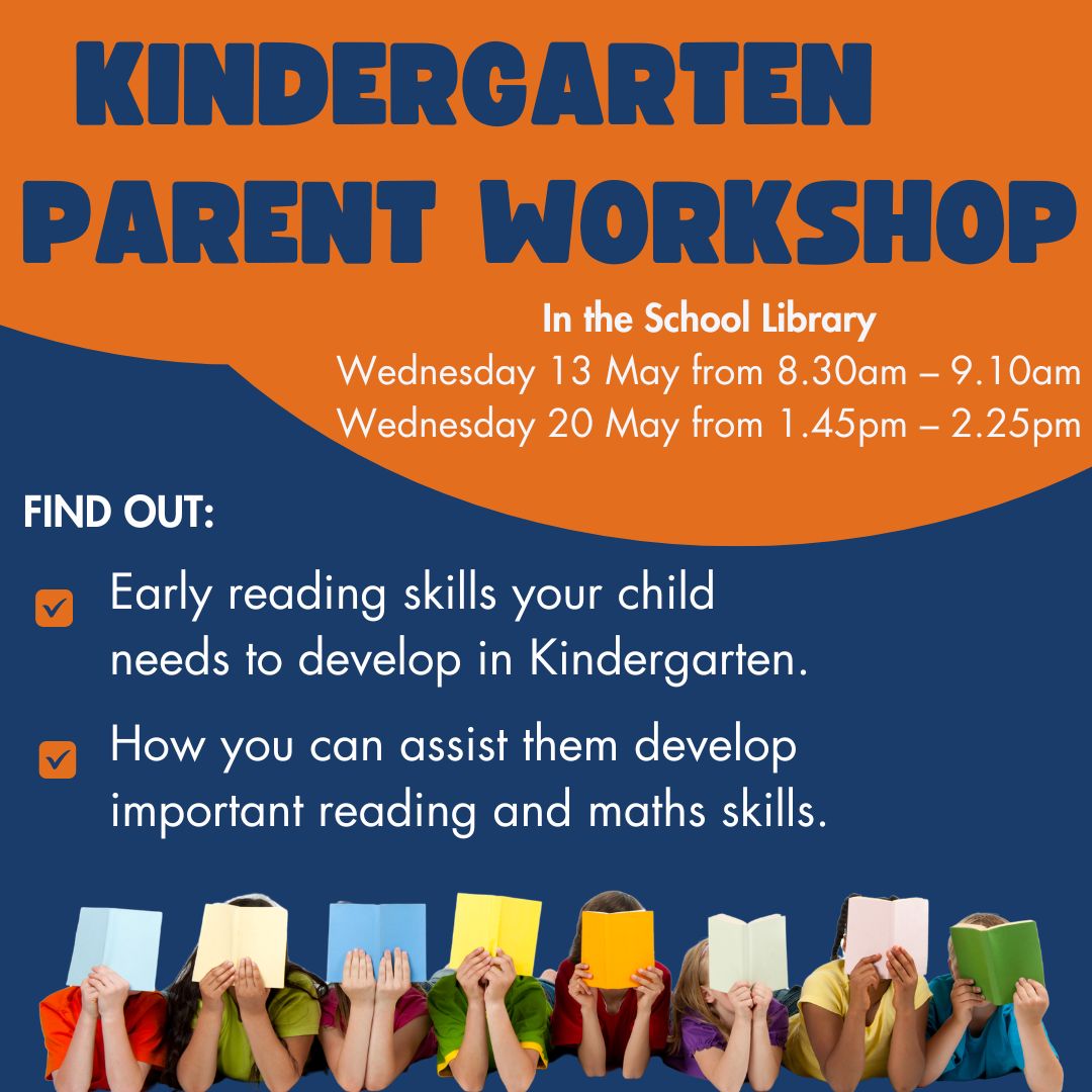 Kindergarten parents and carers are invited to an information workshop presented by the Kindergarten teachers. A key focus of this workshop is the important reading and maths skills your child needs to learn this year, to ensure they do not fall behind in future years. The workshop will cover the following topics: