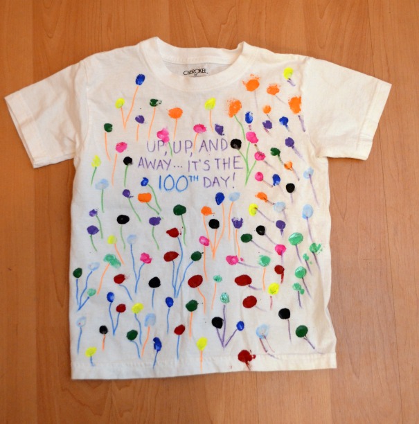 - Creating/wearing a t-shirt that represents the number 100 (100 pom poms, 100 toy dinosaurs, 100 stickers or the number 100).